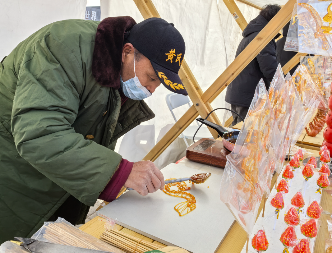 与文艺展演同步的年味市集亮点纷呈,七大展区便民惠民。非遗技艺展示区里,糖画、剪纸、贺兰石篆刻等非遗代表性项目传承人现场创作,群众可观赏体验并了解非遗文化;民俗游戏互动区人气爆棚,投壶、套圈、猜灯谜等免费项目吸引各年龄段群众参与,赢取春联、福字等礼品;健康生活服务区免费测血压、血糖,普及健康知识;春耕助力区最受农民青睐,农资企业推介优质产品,农技专家现场解答种植养殖难题、发放技术指南。此外,活动现场还设置了科技赋能区、新春送福区、文化知识传播区?!霸诳唇谀?、品美食、做游戏的过程中,我感受到了浓浓的年味,特别开心?!笔忻窭钅人?。